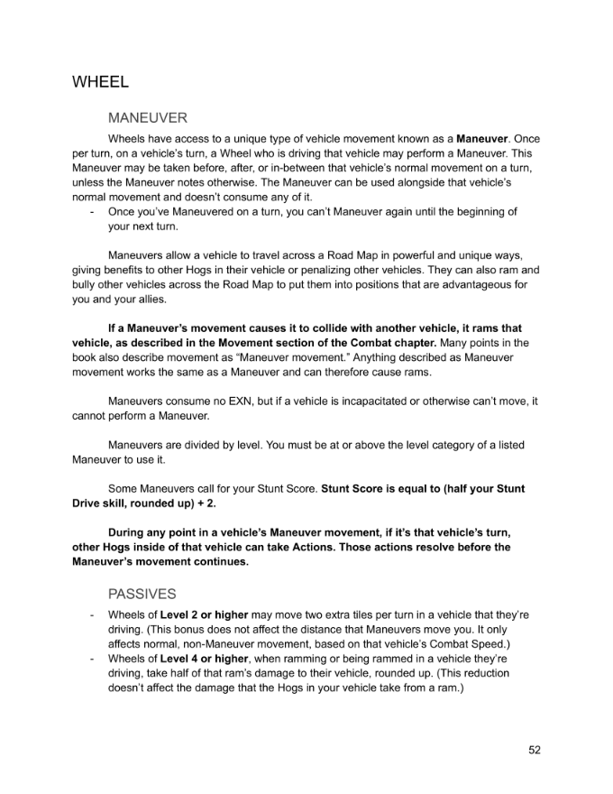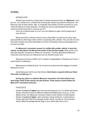 - Wheels use incredible driving skill to perform Maneuvers, special movement options that enable you to dance across the battlefield and ram your enemies.